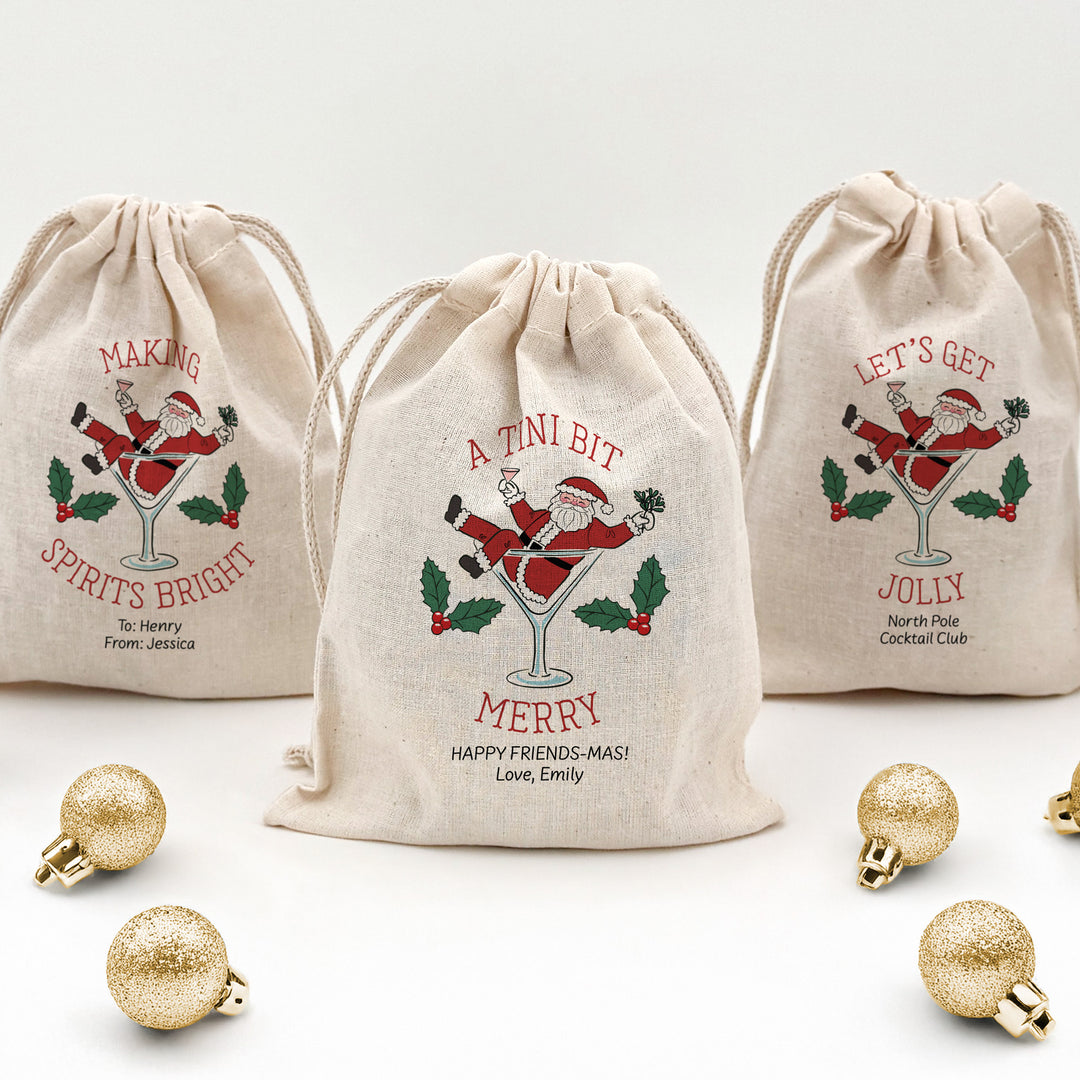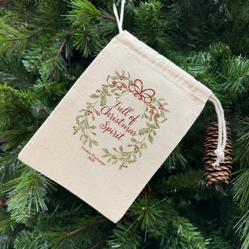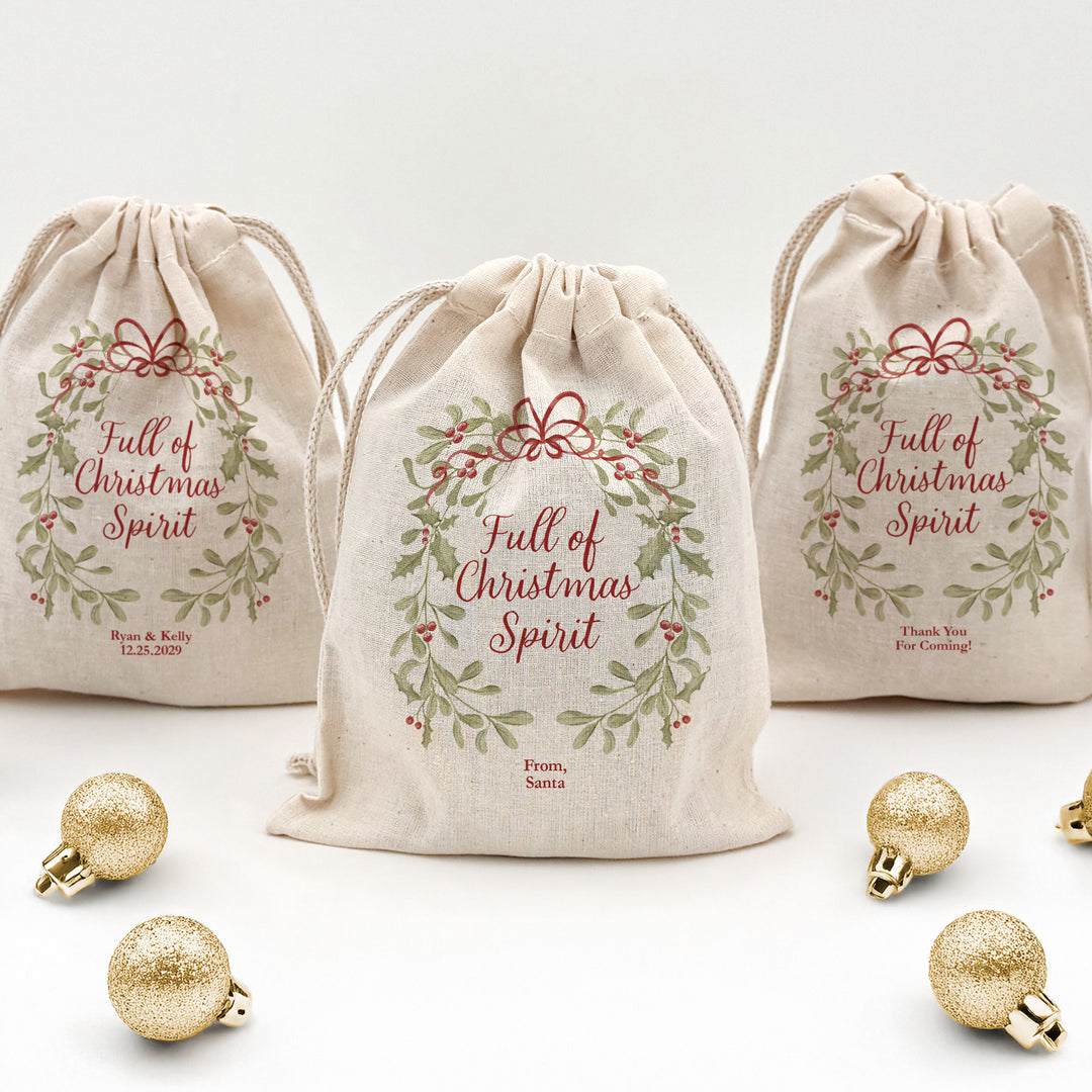 Full of Christmas Spirit, Mistletoe & Bows Drawstring Bags