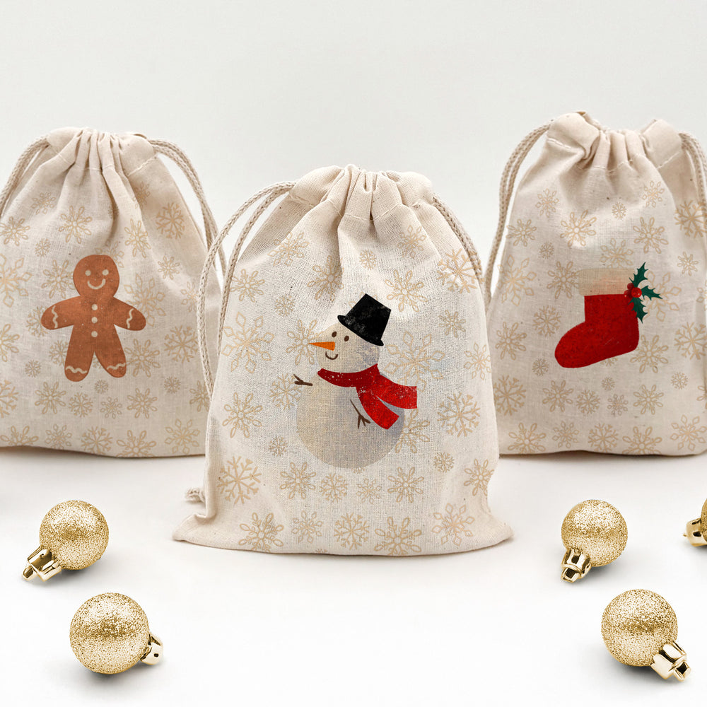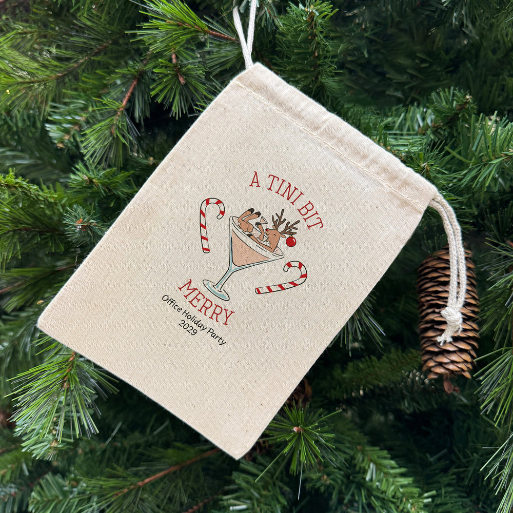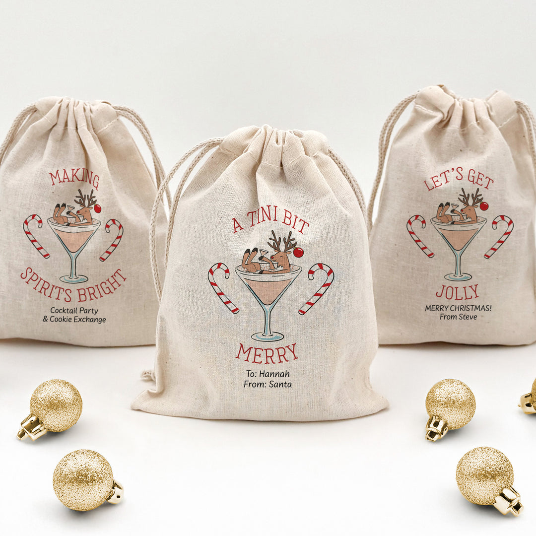 Full of Christmas Spirit, Mistletoe & Bows Drawstring Bags