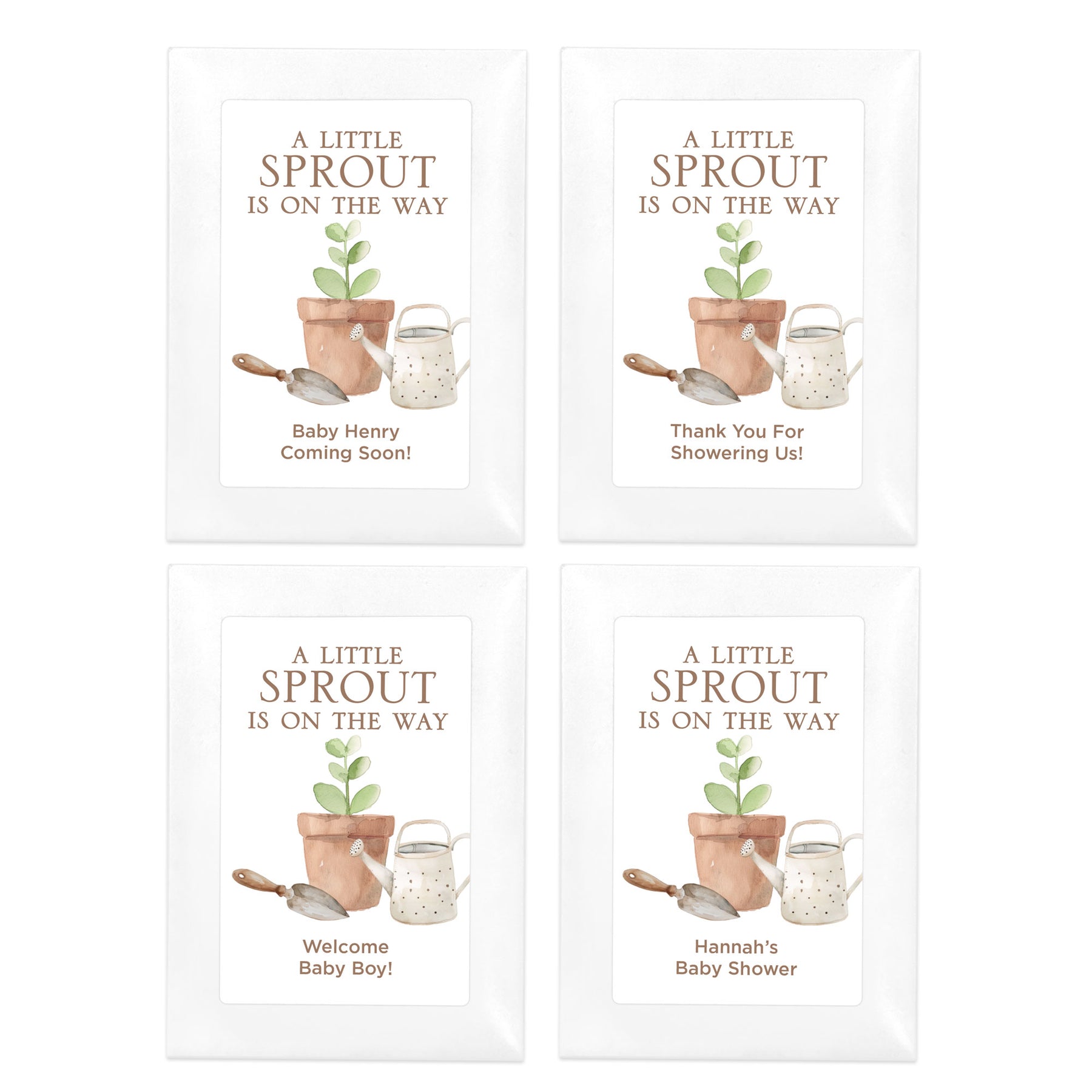 "A little SPROUT on the Way" seed packet favors personalized for your guests at your baby shower. As the seeds grow, it creates an all natural and memorable way to remember your special day.