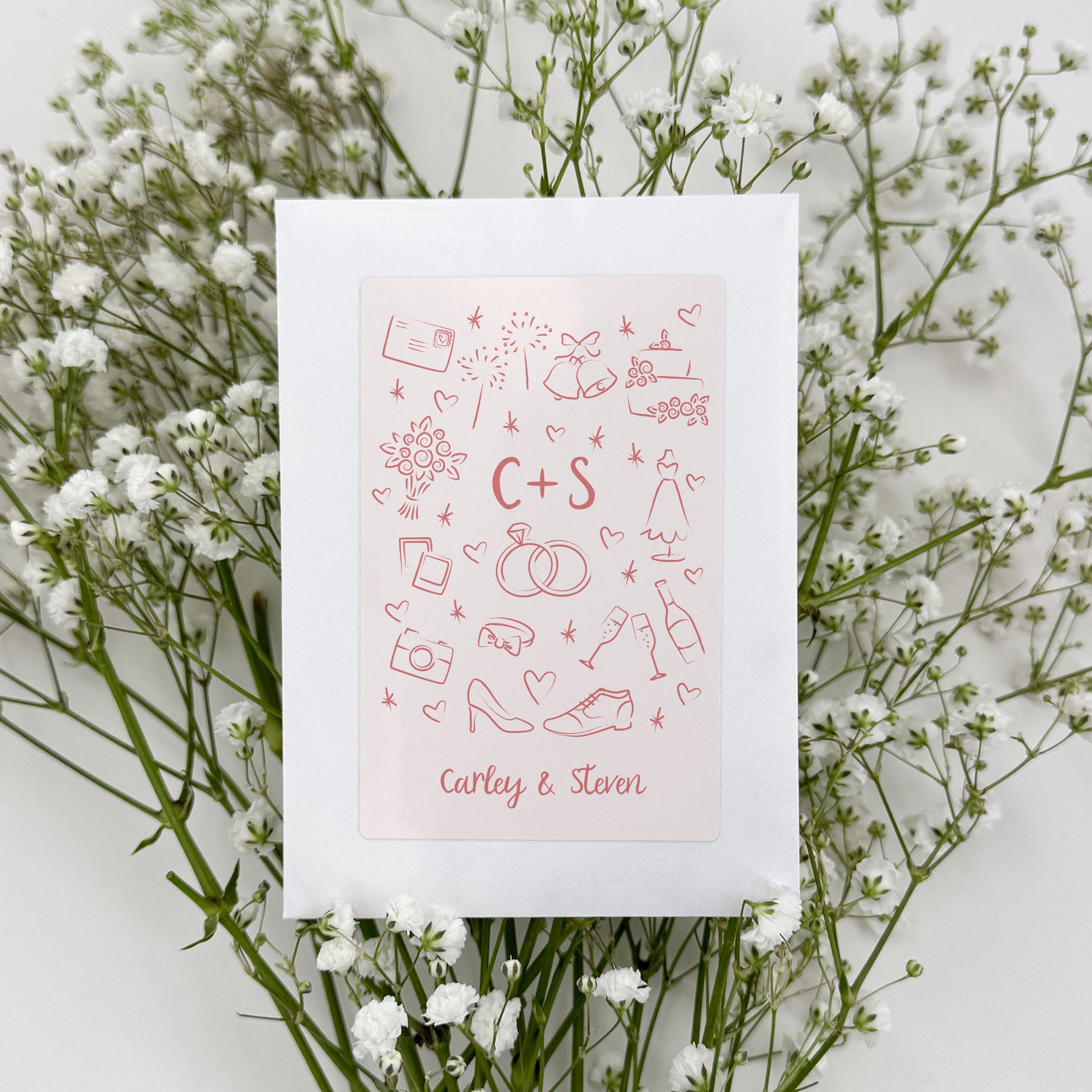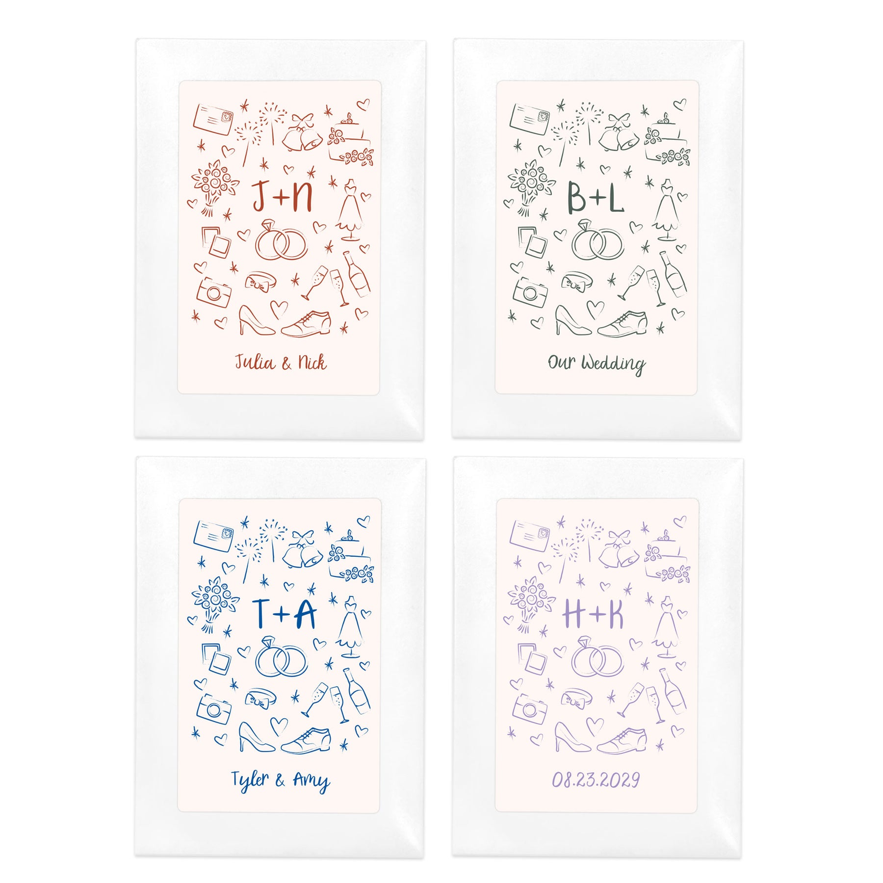 Hand drawn doodle icons on our seed packet favors personalized for your guests at your wedding or bridal shower. As the seeds grow, it creates an all natural and memorable way to remember your special day.