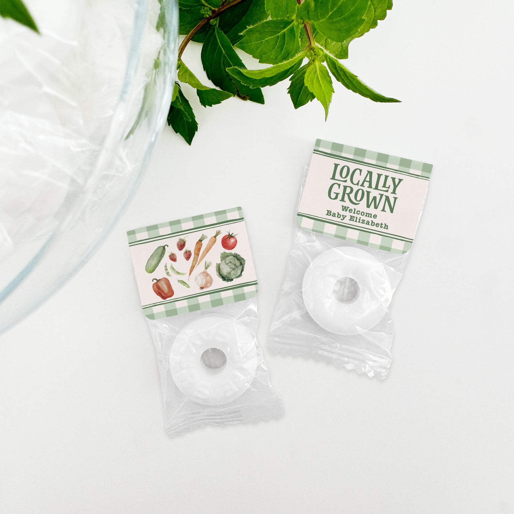 "Locally Grown" is an adorable theme for a baby shower favor. Our personalized Life Saver Mints are a cute way to celebrate the new bundle of joy! Give our adorable mints out to your guests at the baby shower or use them as your birth announcements!