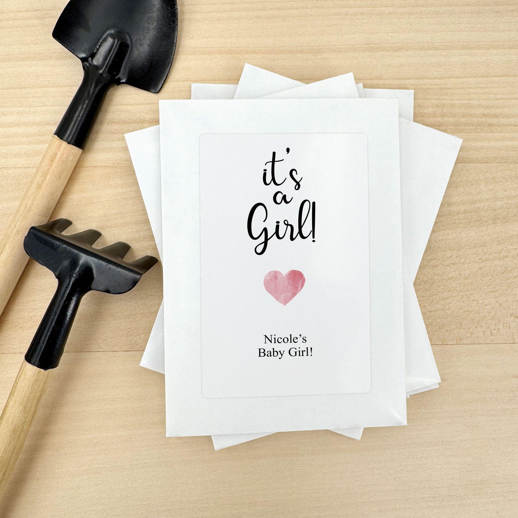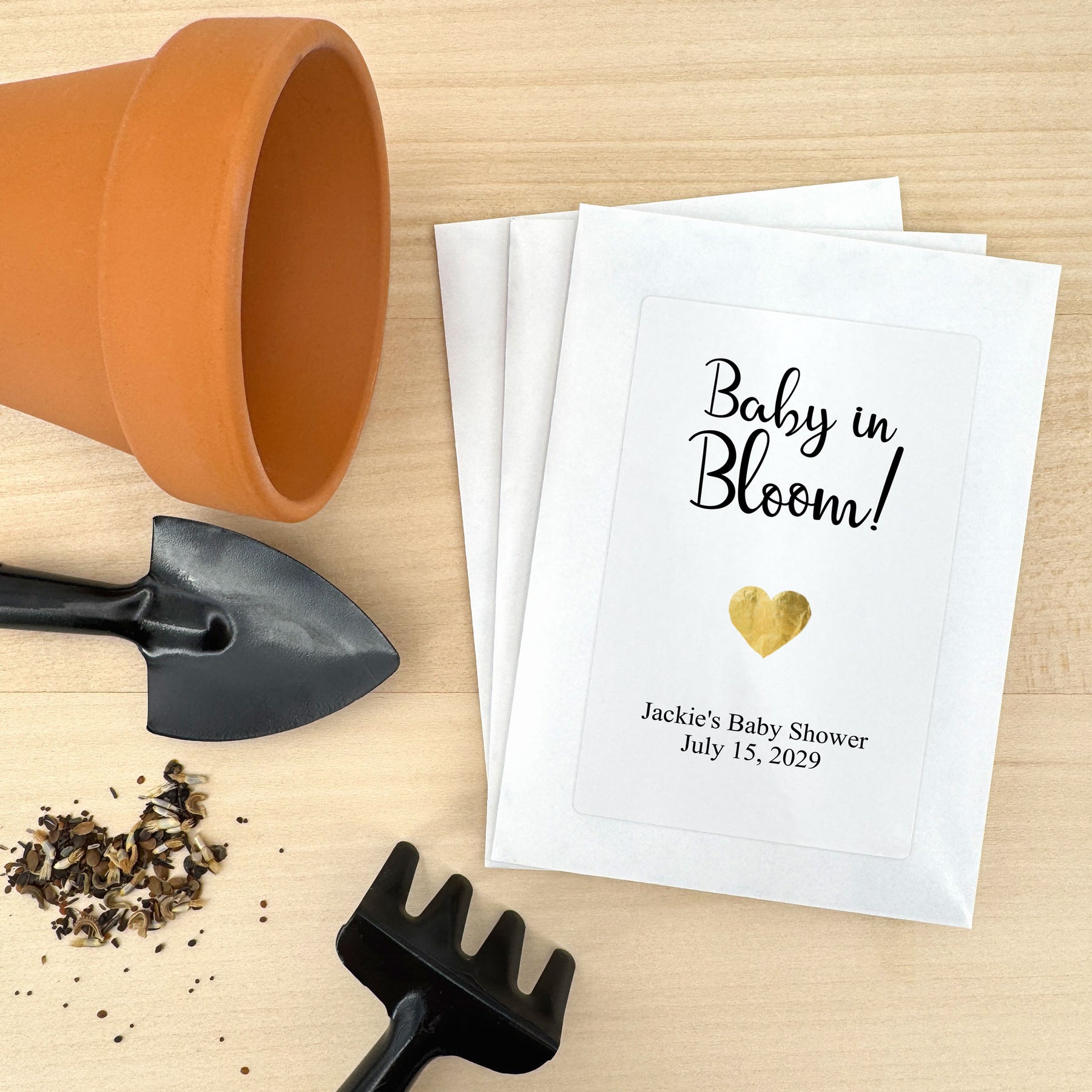 Simple blue, pink, or gold heart designed on our seed packet favors are personalized for your guests at your baby shower. Pick your heart color and your heading to create the perfect match for your celebration. As the seeds grow, it creates an all natural and memorable way to remember your special day.