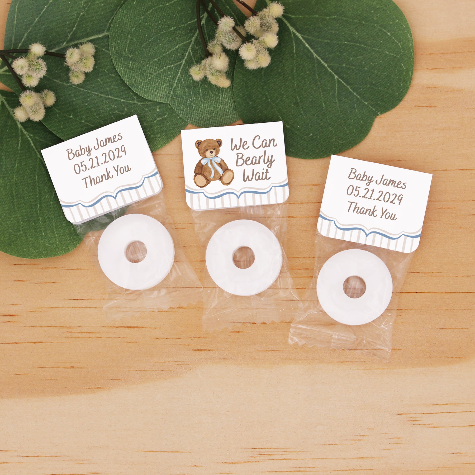 Having a baby shower with the We Can Bearly Wait theme? Personalized Life Saver Mints are a cute way to celebrate the new bundle of joy! Give our mints out to your guests at the baby shower or use them as your birth announcements!