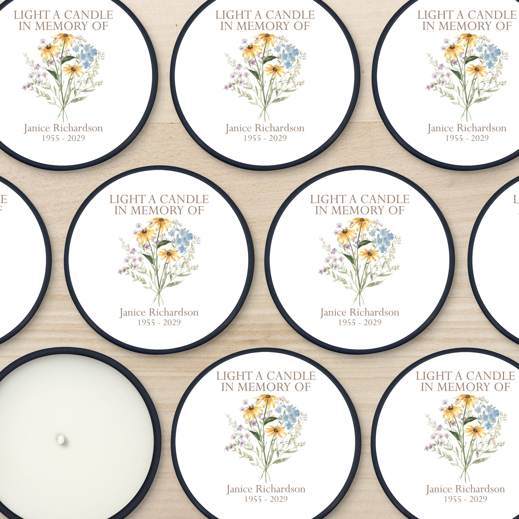 Mini personalized candles to honor and pay tribute to the memory of someone you love. Our memorial candles are a treasured keepsake and a beautiful expression of sympathy for a loved one.