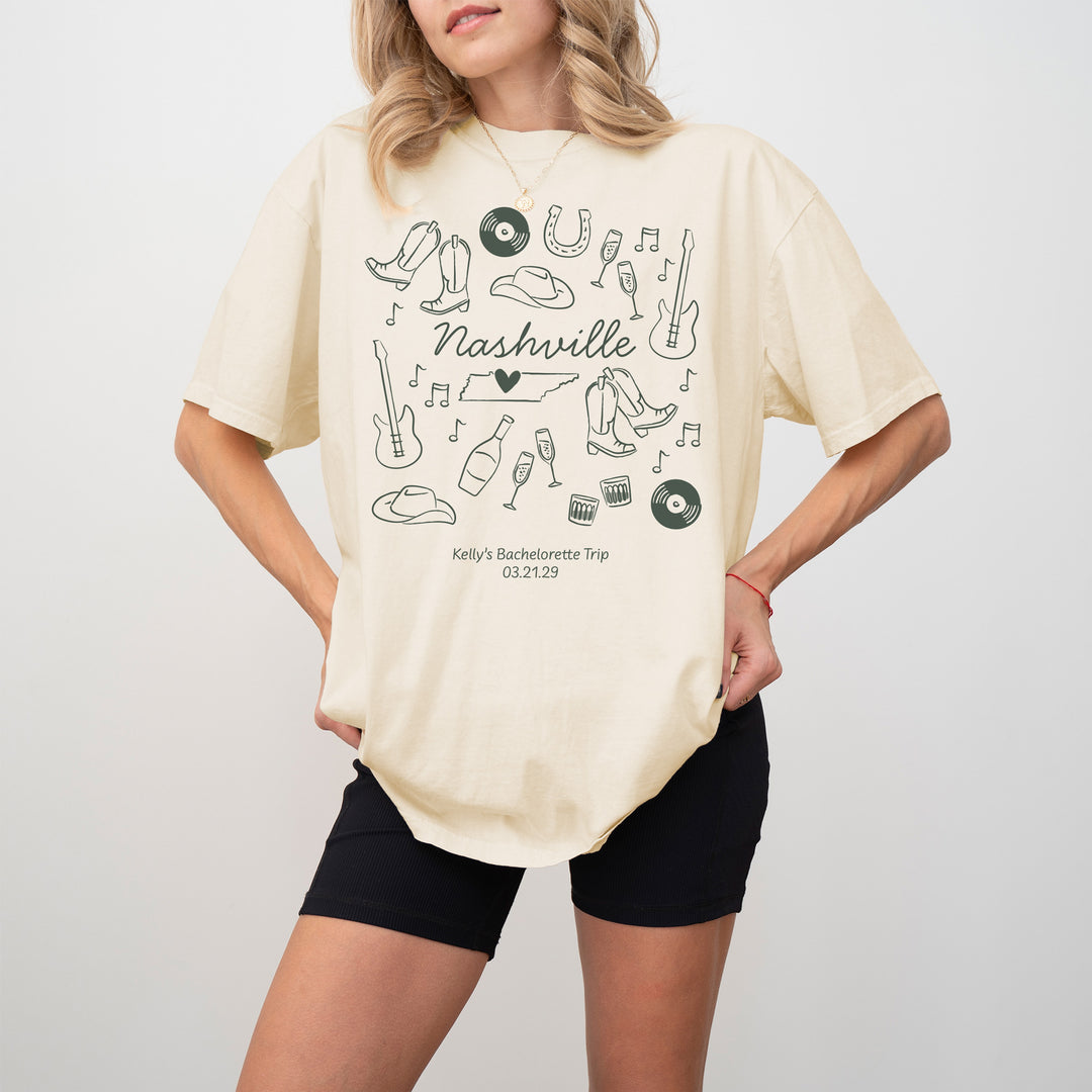 Nashville Bachelorette Doodle, Girls Trip, One-Sided Design on Front, T-Shirt