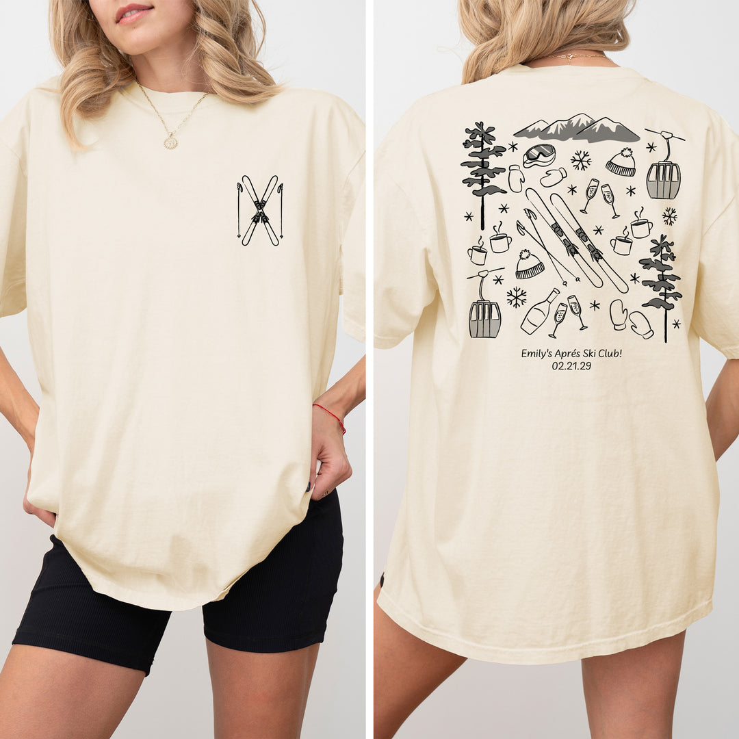 Ski Bachelorette Doodle, Girls Trip, Two-Sided Design, T-Shirt