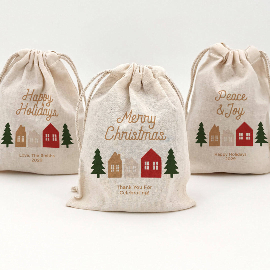 Custom Holiday Drawstring Bags, Christmas Party Favor Goodie Bags, Christmas Sparkle Headings