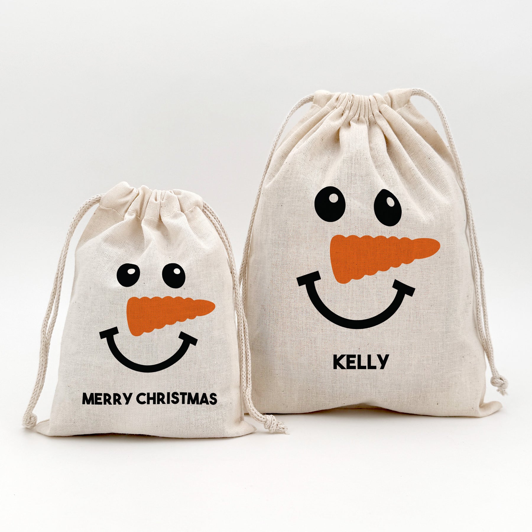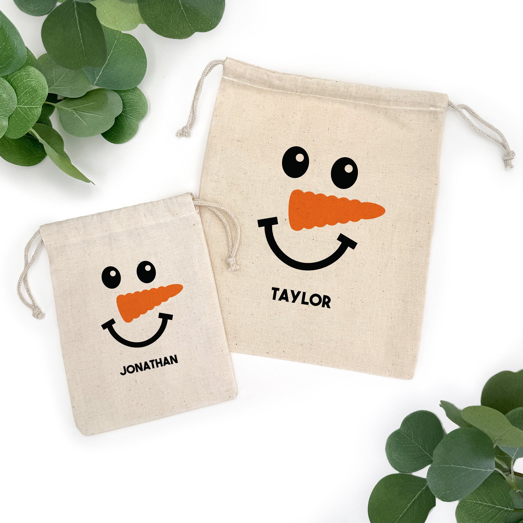 Drawstring goodie bags personalized with our own hand drawn Snowman face along with your name at the bottom of the bag. Our bags will hold some of the fun goodies and little surprise gifts that Christmas can bring. Best used for family and friends or teachers and coworkers. These adorable drawstring bags come in two sizes which will give you many gifting opportunities for all of the special people in your life.