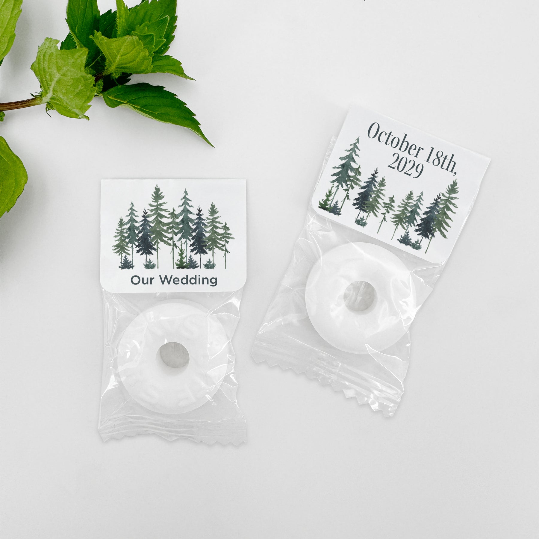 Watercolor winter forest tree Life Saver Mint favors personalized for any occasion.