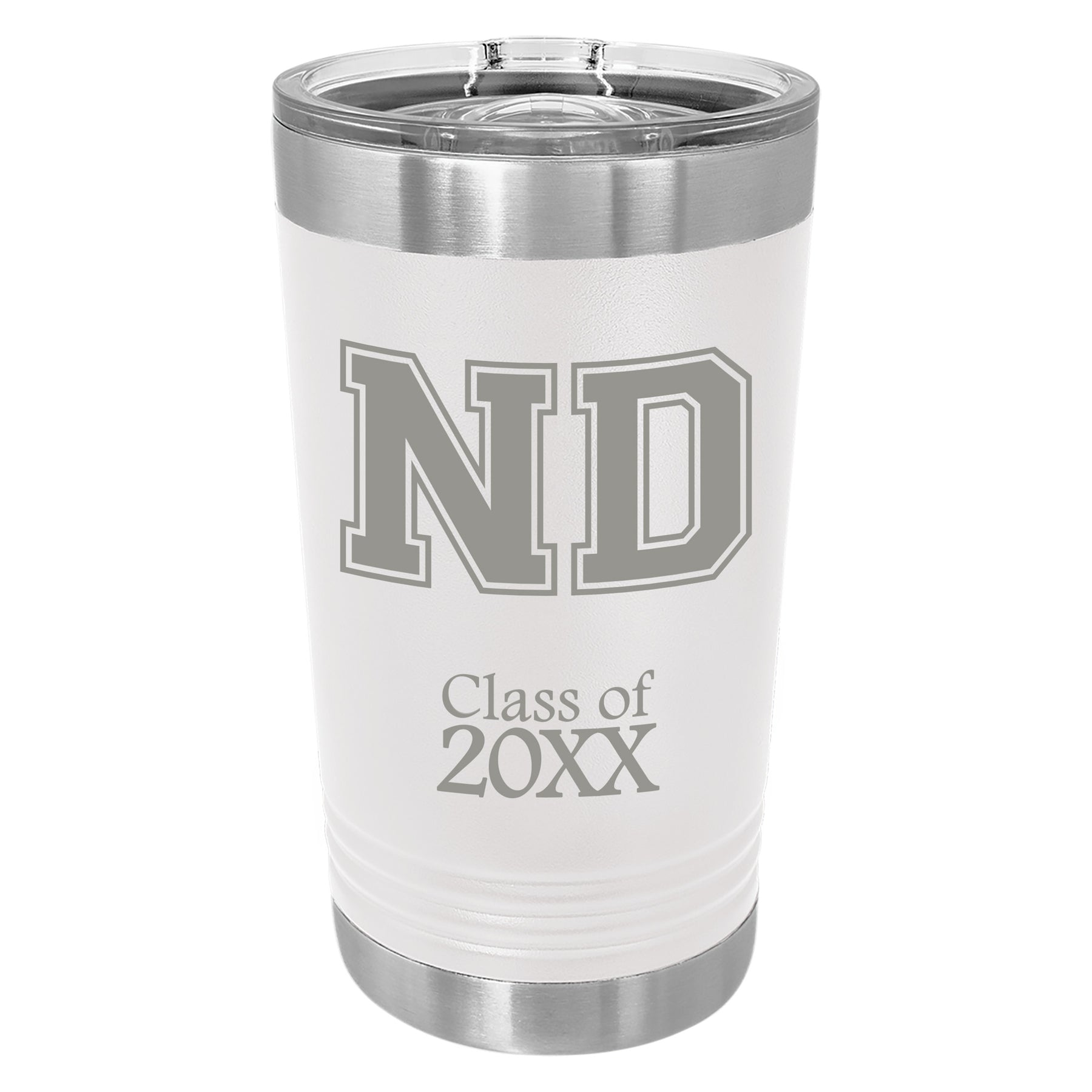 This 16 oz. stainless steel pint sized tumbler features double-wall, vacuum insulation construction and comes with a clear slider lid. No peeling vinyl decals here! The design is permanently engraved on your drinkware.