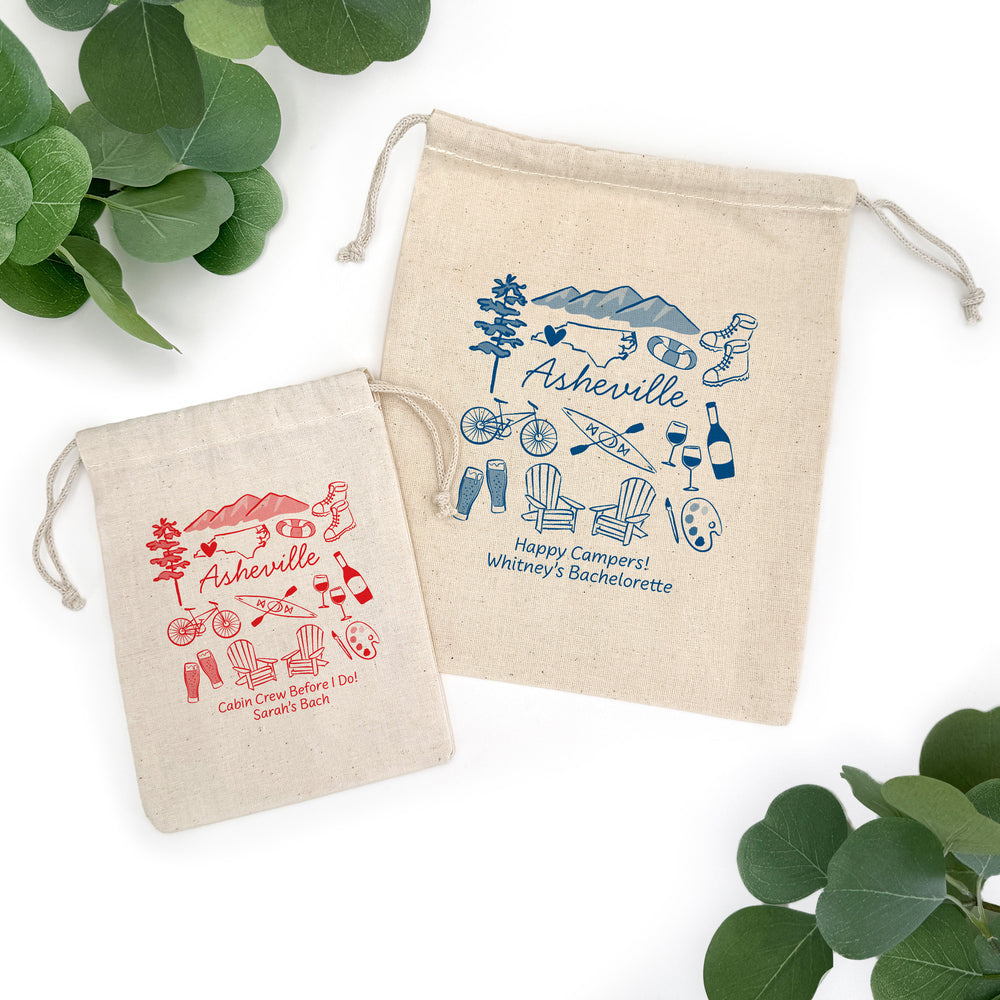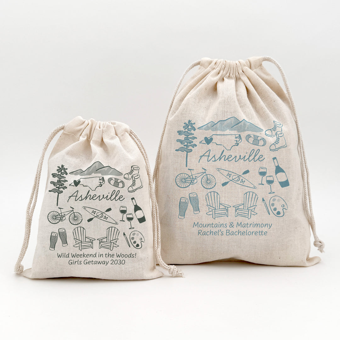 Custom Drawstring Bags, Girls Trip, Asheville Bachelorette Bags