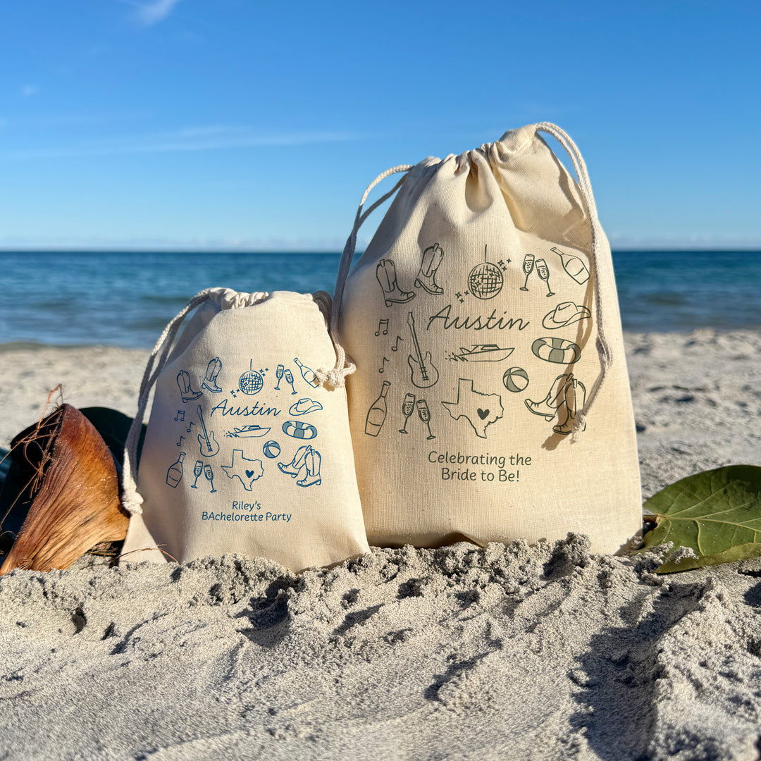 Custom Drawstring Bags, Girls Trip, Austin Bachelorette Bags