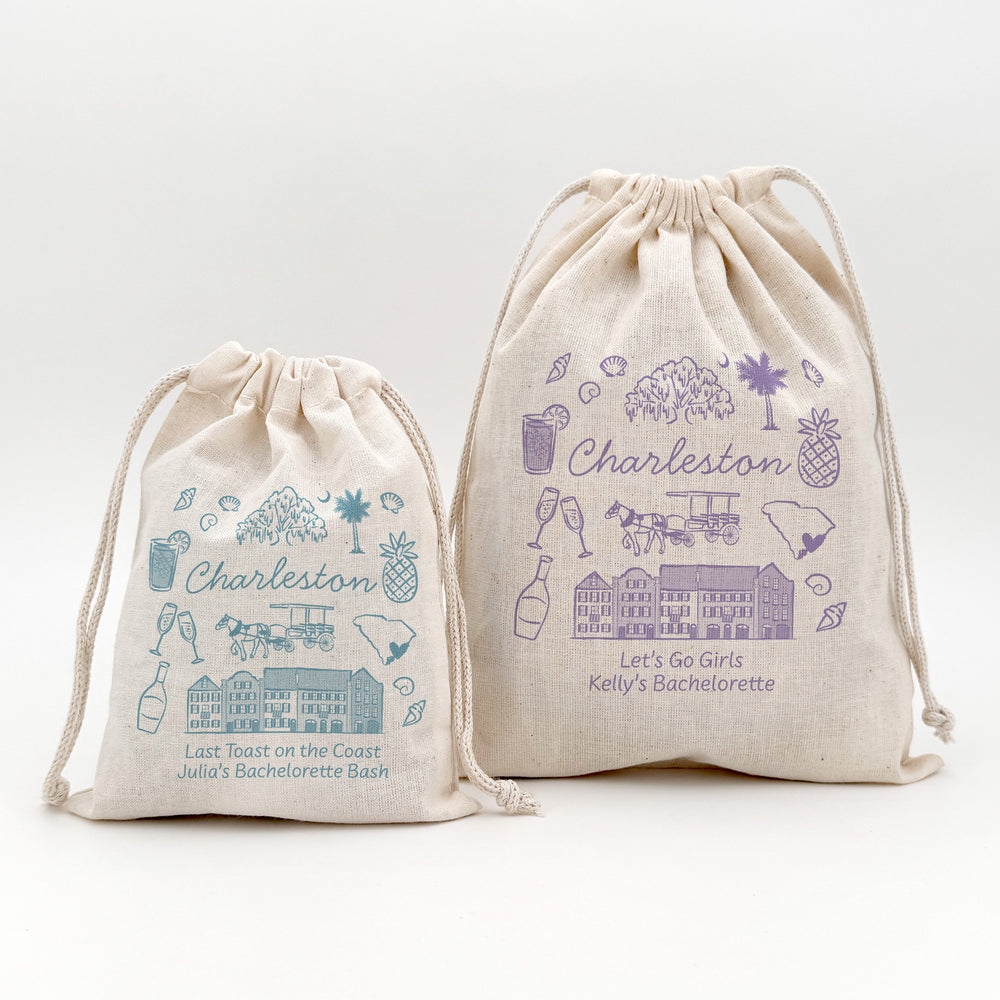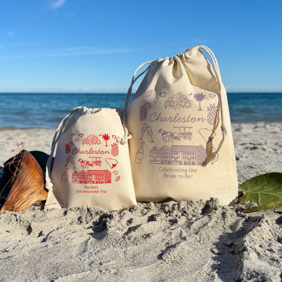 Custom Drawstring Bags, Girls Trip, Charleston Bachelorette Bags