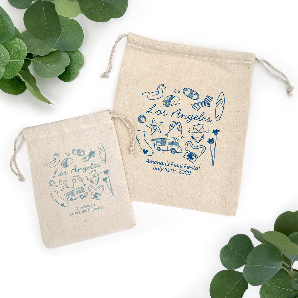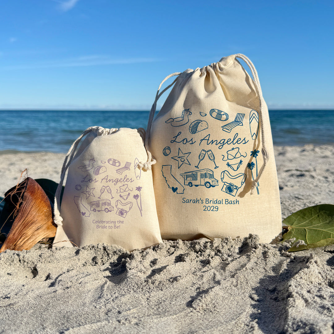 Custom Drawstring Bags, Girls Trip, Los Angeles Bachelorette Bags