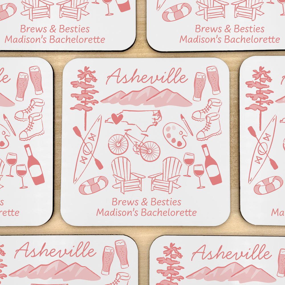 Custom Wedding Coasters, Girls Trip, Asheville Bachelorette Coasters